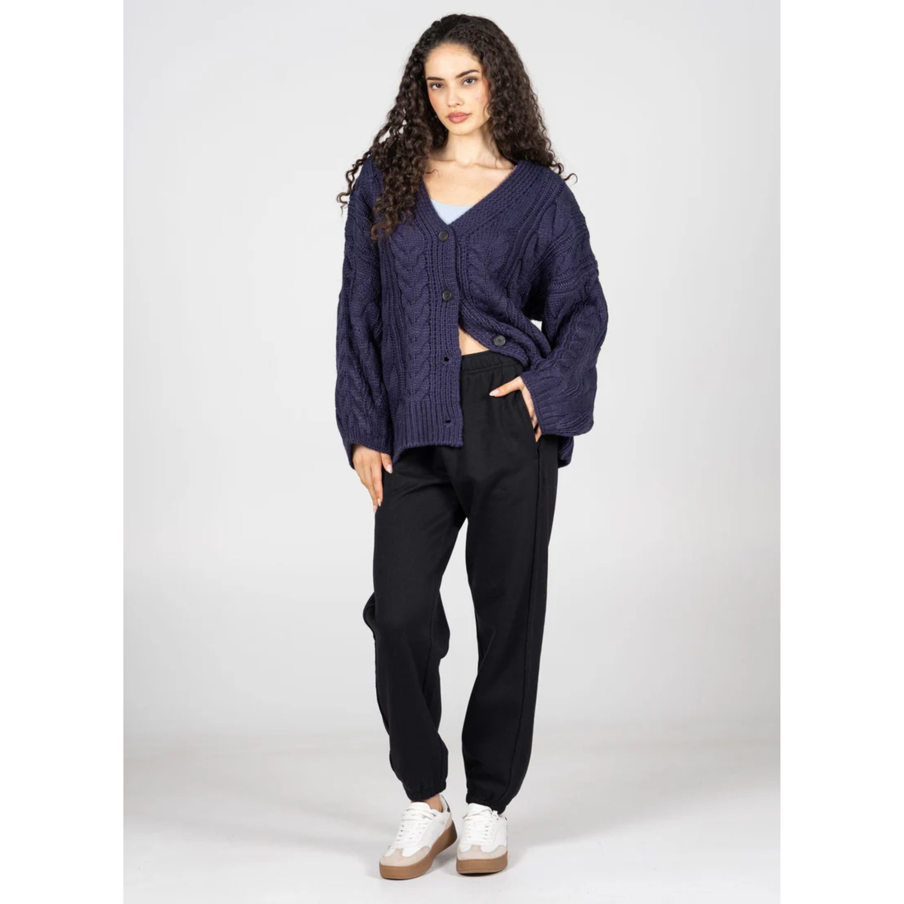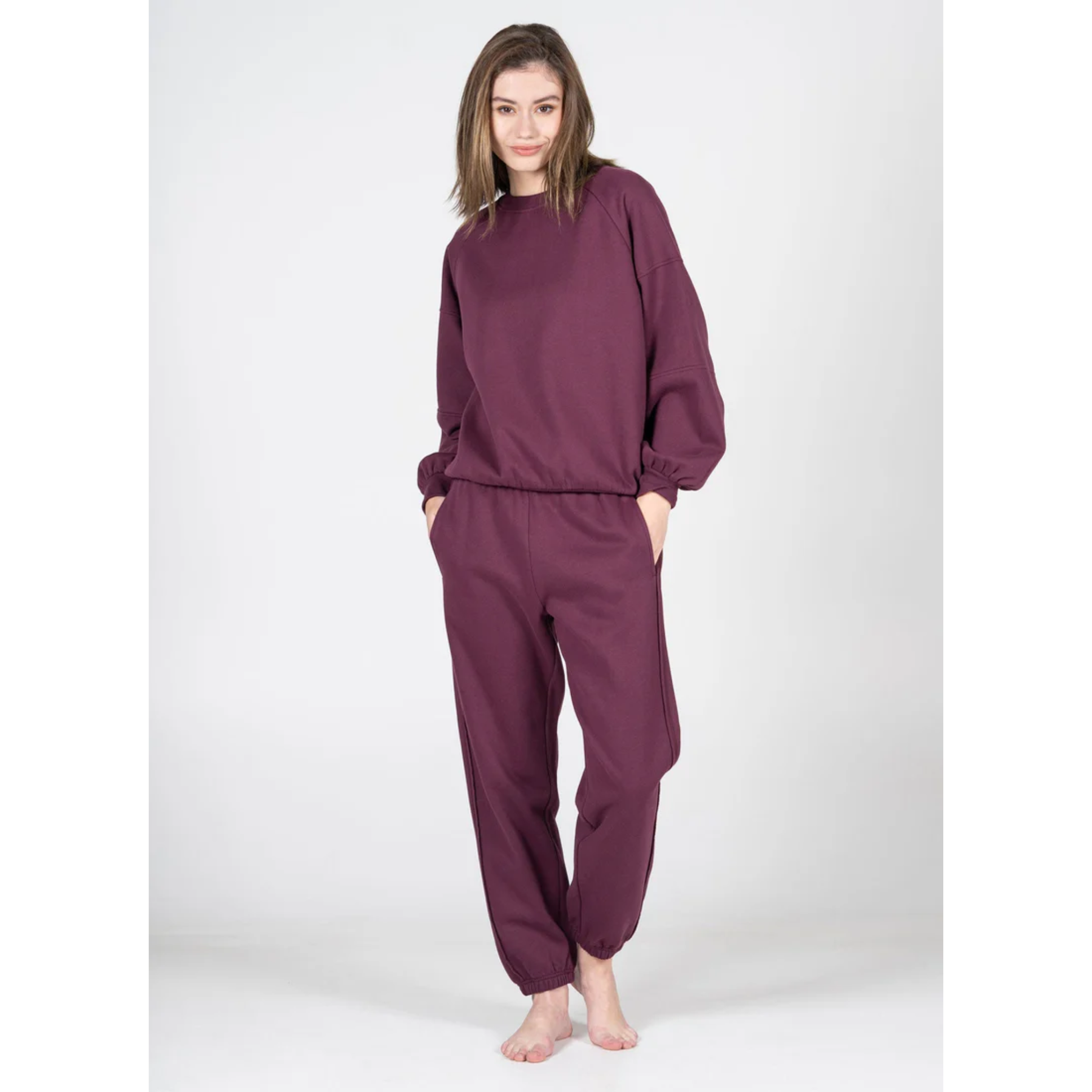 A jogger pant that features a comfy elastic waistband, cuffed ankles and two front and one back pockets.