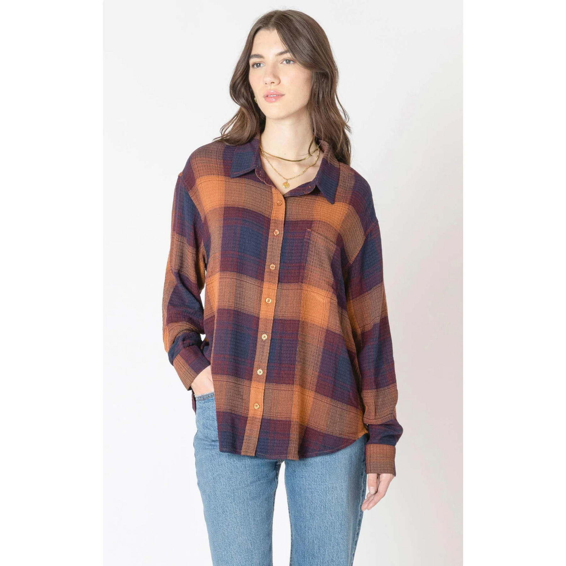 This Dex Textured Plaid Shirt just screams fall! With the autumn colours and the soft fabric, this button-up is a classic shirt for the cooler days.