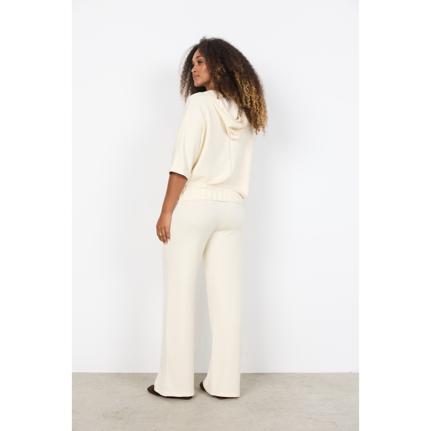 The Banu 282 is a stylish sweatshirt made from 48% Modal, 48% Polyester, and 4% Elastane. It has a front zip closure, a hood with drawstrings, and short sleeves with turned cuffs. This cool sweatshirt pairs elegantly with jeans.