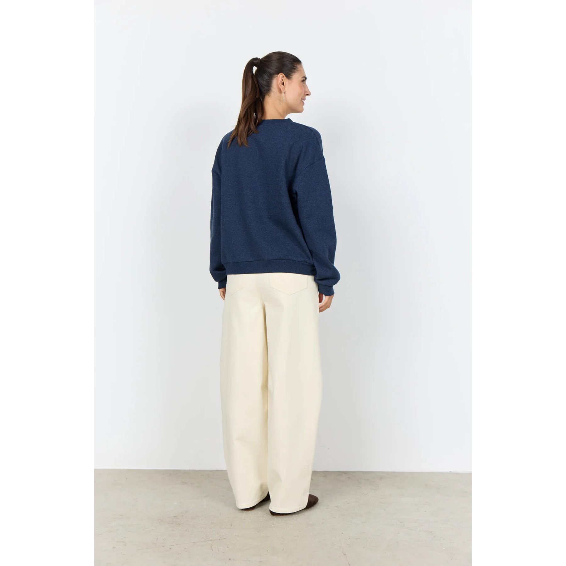 This sweatshirt is crafted from 60% organic cotton and 40% recycled polyester. It features a classic crew neck and a bold front print with elegant lettering. Pair it with jeans or leggings for a cool, casual look.