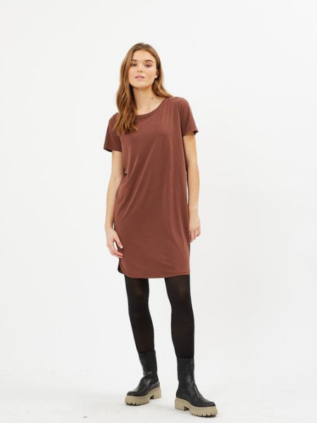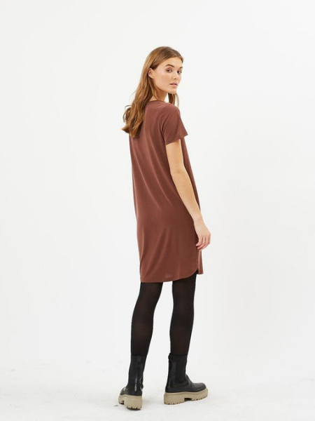 Larah 0281 is a jersey dress crafted in a soft modal and recycled polyester blend. The dress has a regular, loose fit and features short sleeves, crew neck and short slits at the side seams with rounded edges.