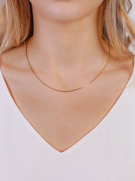 Beautiful and simple box chain necklace, 45 cm long. Personalize it with our charms and pendants or simply layer it with your other Pilgrim necklaces.