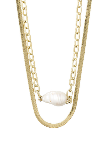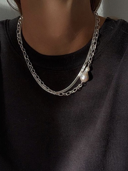 This 2-in-1 set is elegant yet bold. The cable chain holds a large freshwater pearl, complimented by the thin and minimalist herringbone chain.