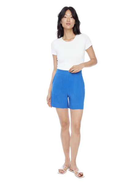 52% Linen / 46% Viscose / 2% ElastaneRelaxed fitPull-on elastic waistband (1 ¾”)Cargo-style pocketsSide ventsInseam: 5”Mid-rise