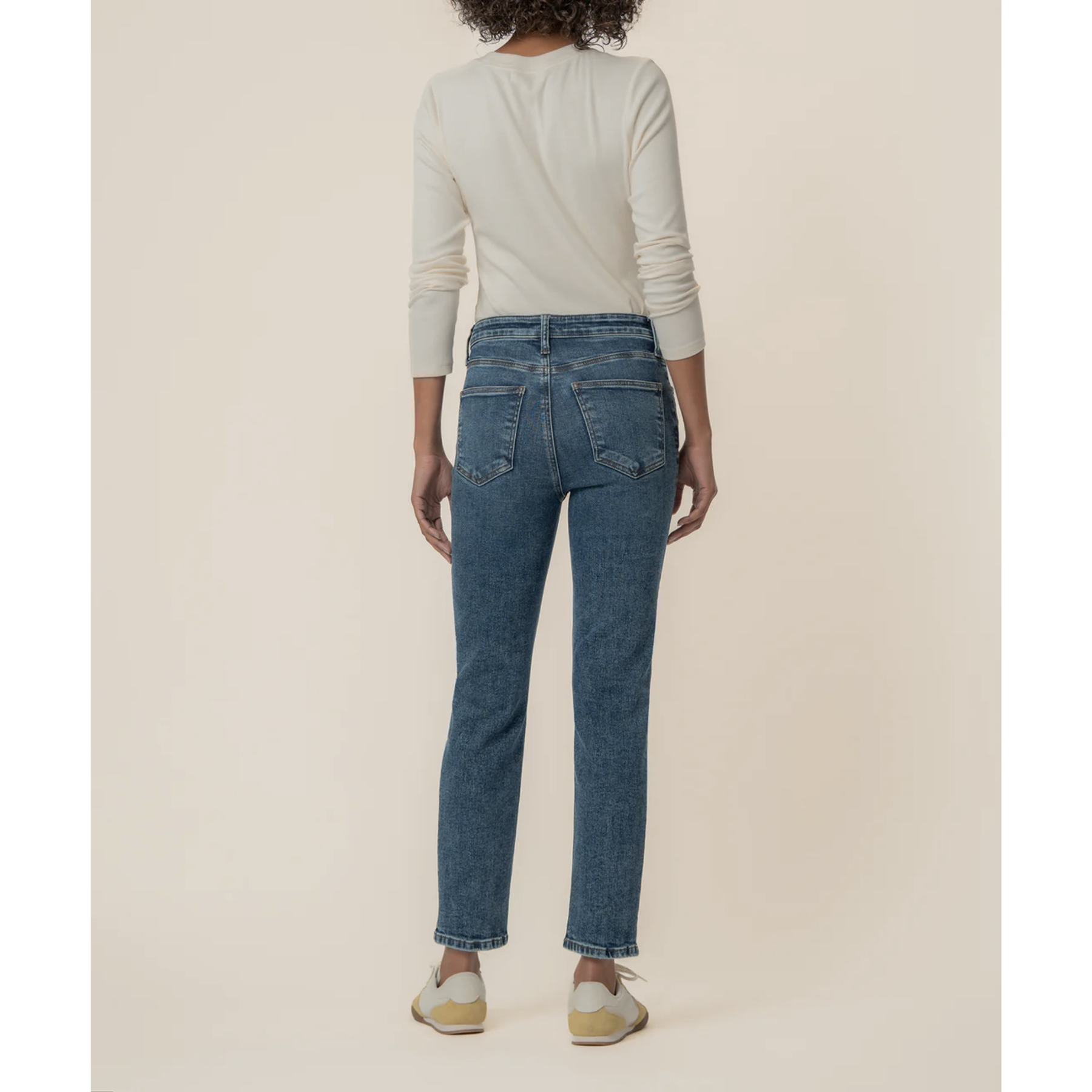 These high-rise mom jeans combine a timeless shape with all-day comfort, thanks to their softly structured stretch fabric that flexes as you move. Designed in a deep, dark wash, they strike the perfect balance between refined and relaxed. An easy essential you can style up or down for any occasion.