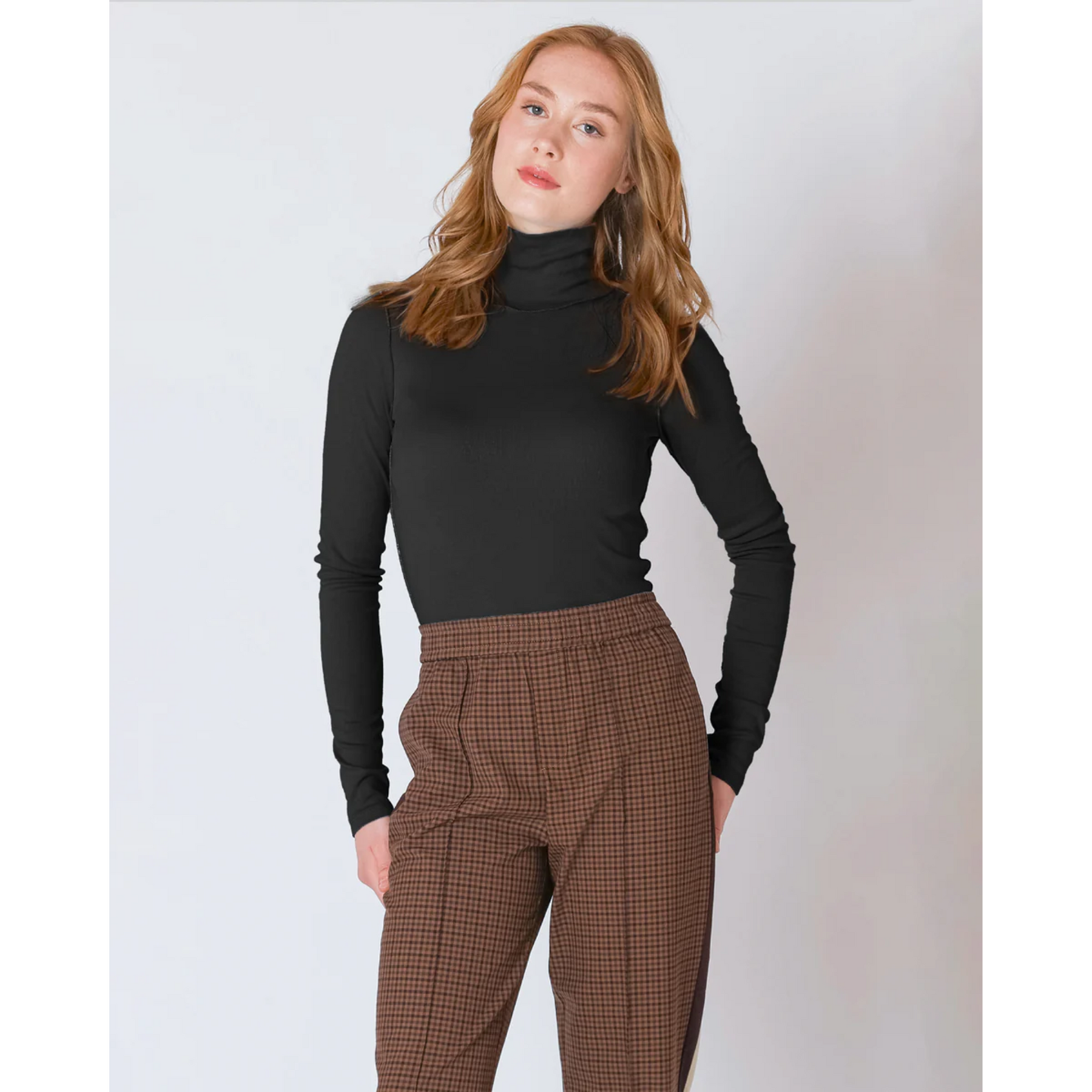 This turtleneck combines class with comfort, with its soft fabric. The exposed seam adds an edgy touch.
