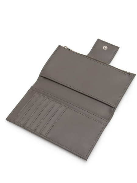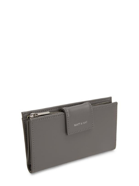 Folded wallet with tab closure, large zippered coin point,3 slip pockets, and 7 card slots.