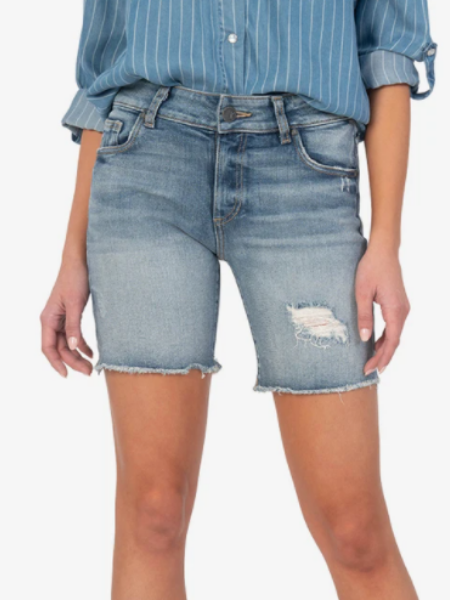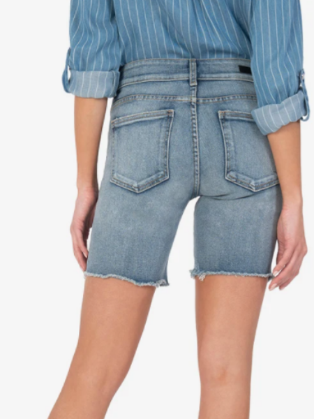 Figure-flattering and comfortable are the perfect combination in this pair of denim bermuda shorts. Crafted in our cotton blend, deconstructed details complete this look.