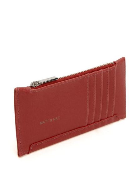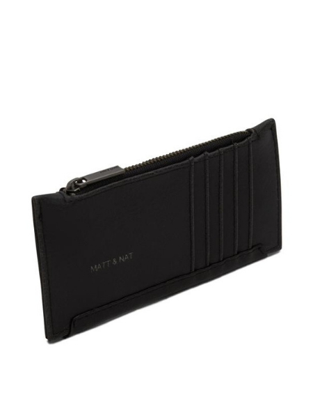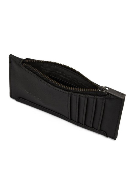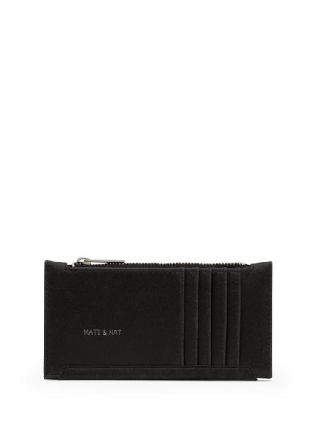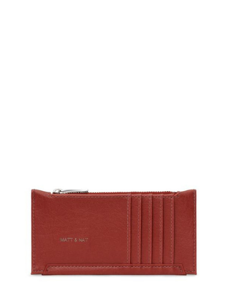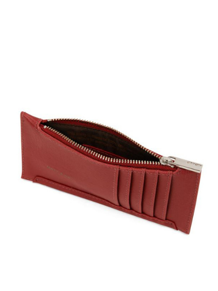 Slim wallet with top zipper closure. 5 card slots on back.