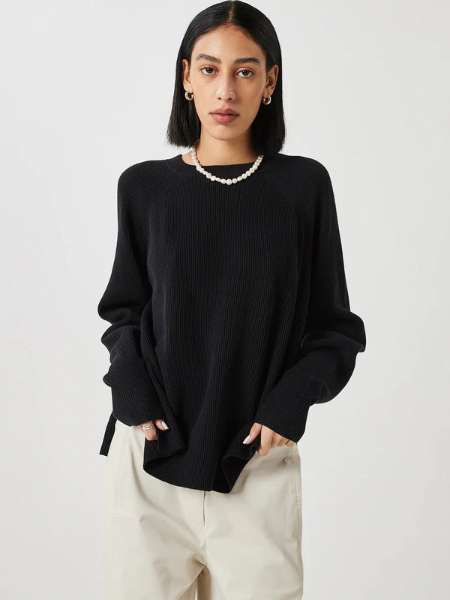 Mockine G007 is a knitted shirt crafted from 100% organic cotton for a comfortable quality. The shirt has a relaxed fit and features a rib structure, slit along the sides and voluminous sleeves, that are more tight fitting at the bottom of the sleeve. The model is 180 cm tall and wears a size small.