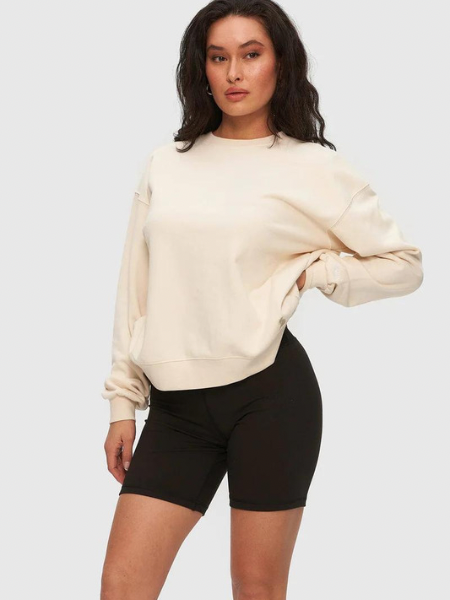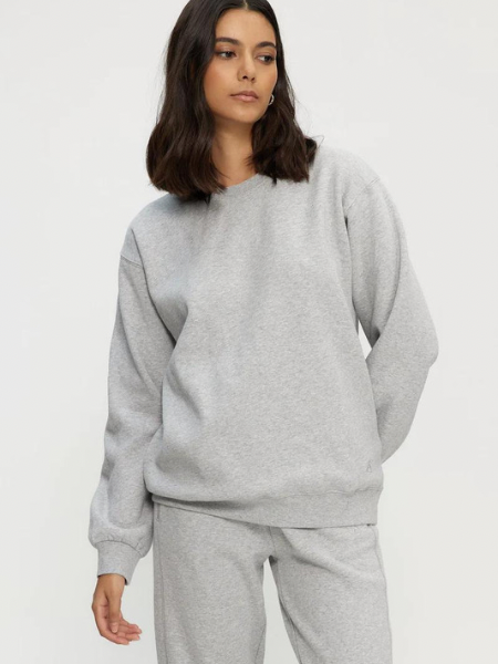 Crew-neck sweater with ribbed collar, cuffs & hem. Features raglan sleeves and tonal stitching throughout.
