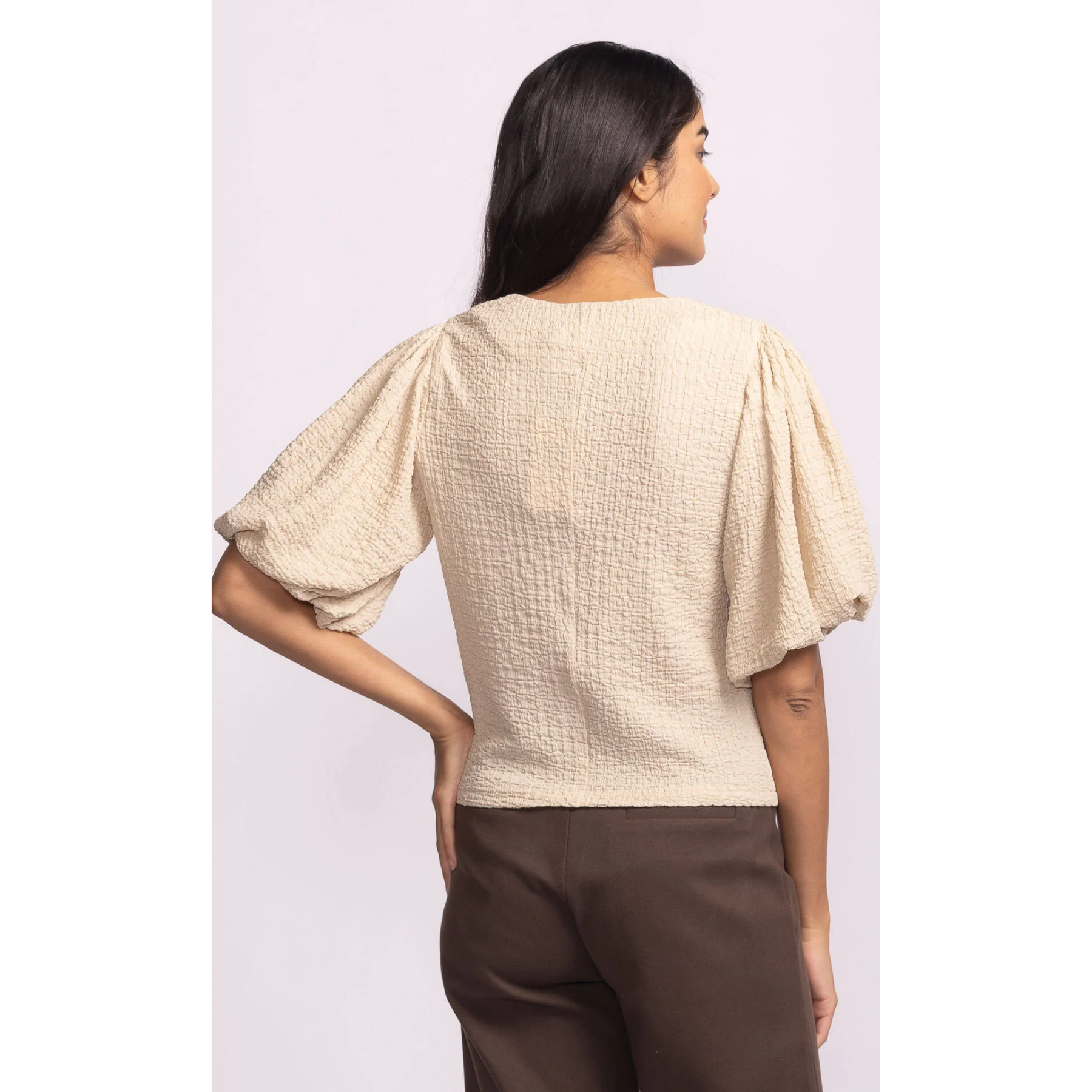 The Lita brings features a textured crinkle fabric and puff sleeves, for that casual but princess look. The texture is light and airy.