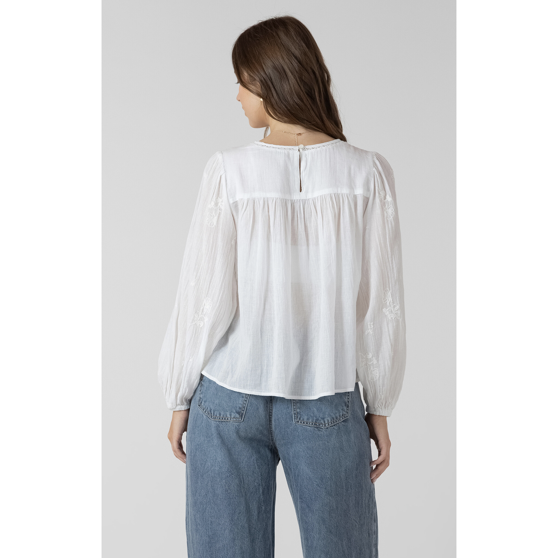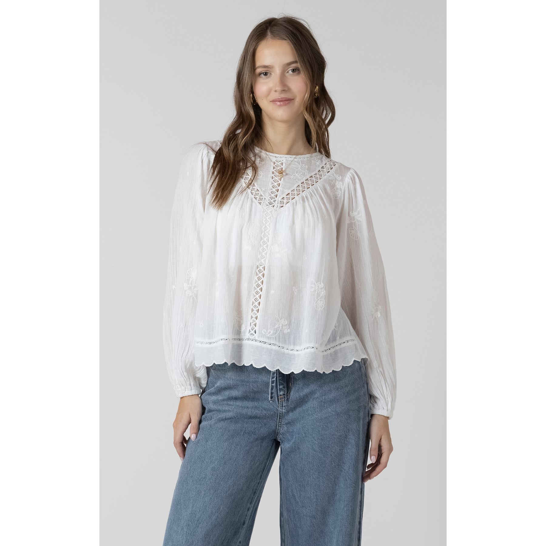 The Dex Crochet Embroidered Blouse features delicate embroidery and soft crochet detailing for a romantic, feminine feel. Designed with a relaxed fit and airy fabric, it’s an effortless piece that pairs perfectly with your favourite denim.