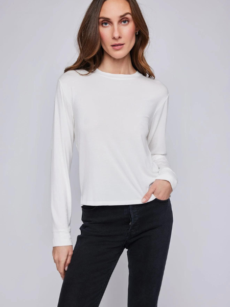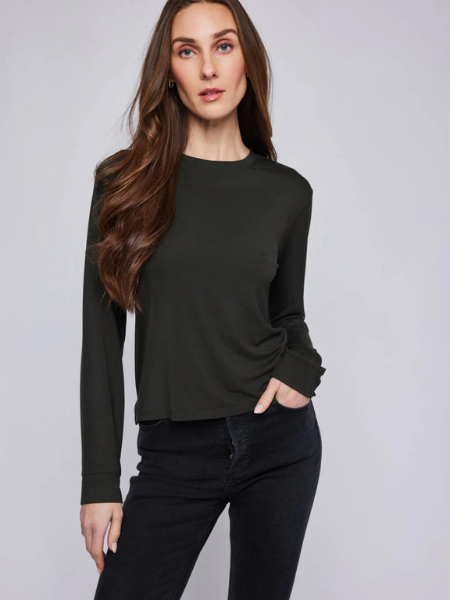 The Trudy is made of super soft EcoVero rayon jersey. Features include a crew neckline and side slits.